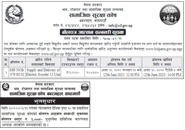 बोलपत्र आह्वान सम्बन्धी सूचना !!!