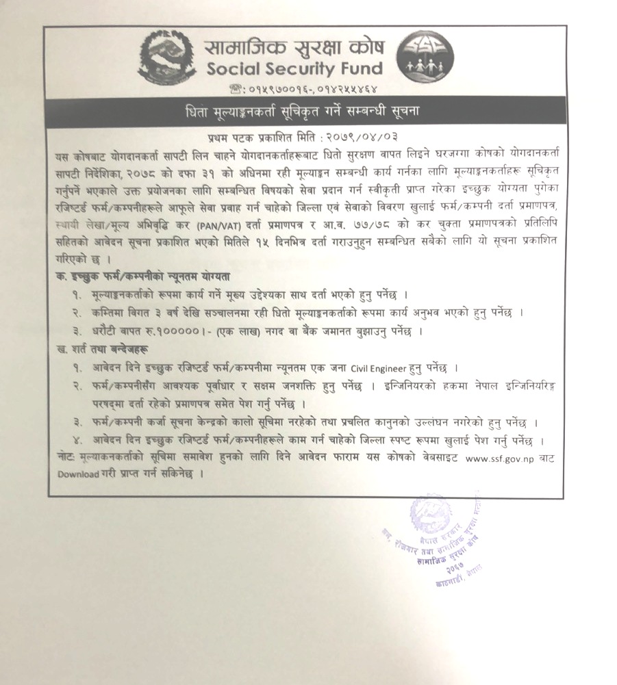 धितो मुल्यांकनकर्ता सूचिकृत गर्ने सम्बन्धी सूचना !!!
