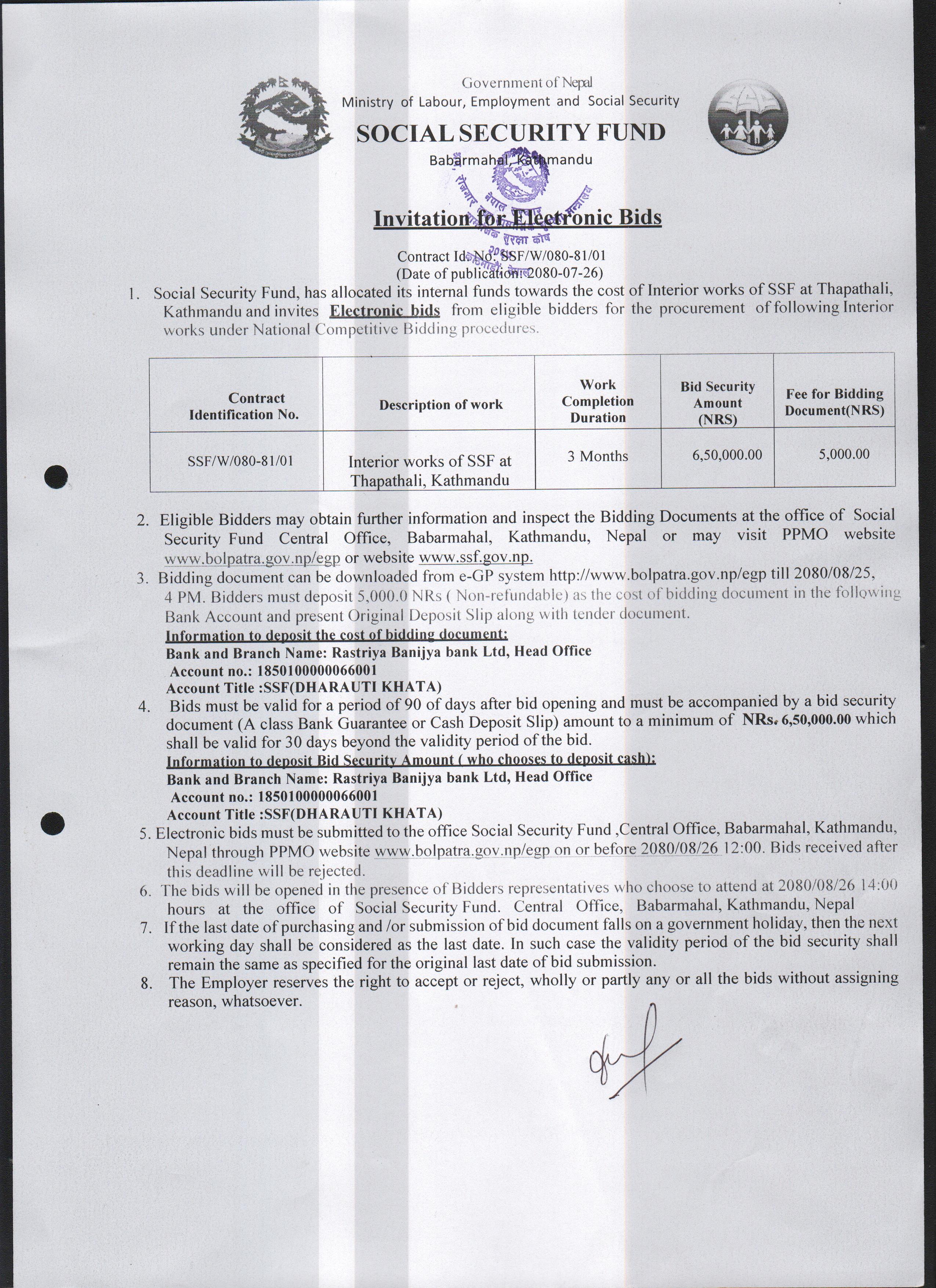 बोलपत्र आह्वान सम्बन्धी सूचना !!!