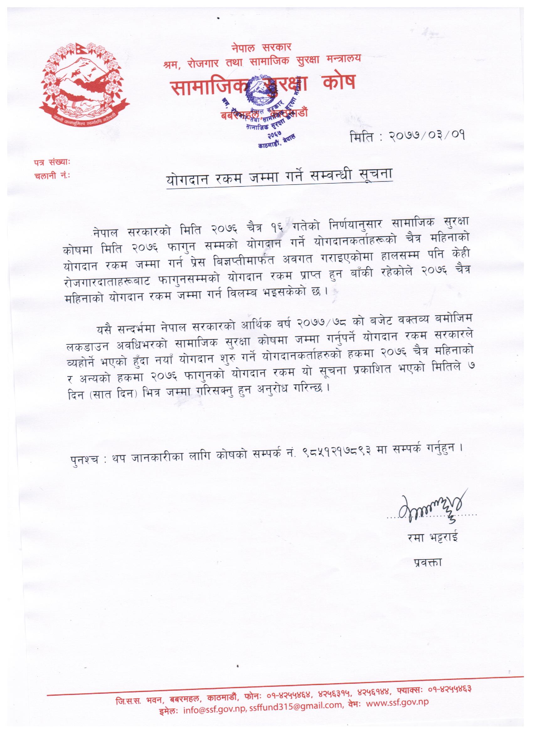 Download: योगदान रकम जम्मा गर्ने सम्बन्धी अत्यन्त जरुरी सूचना